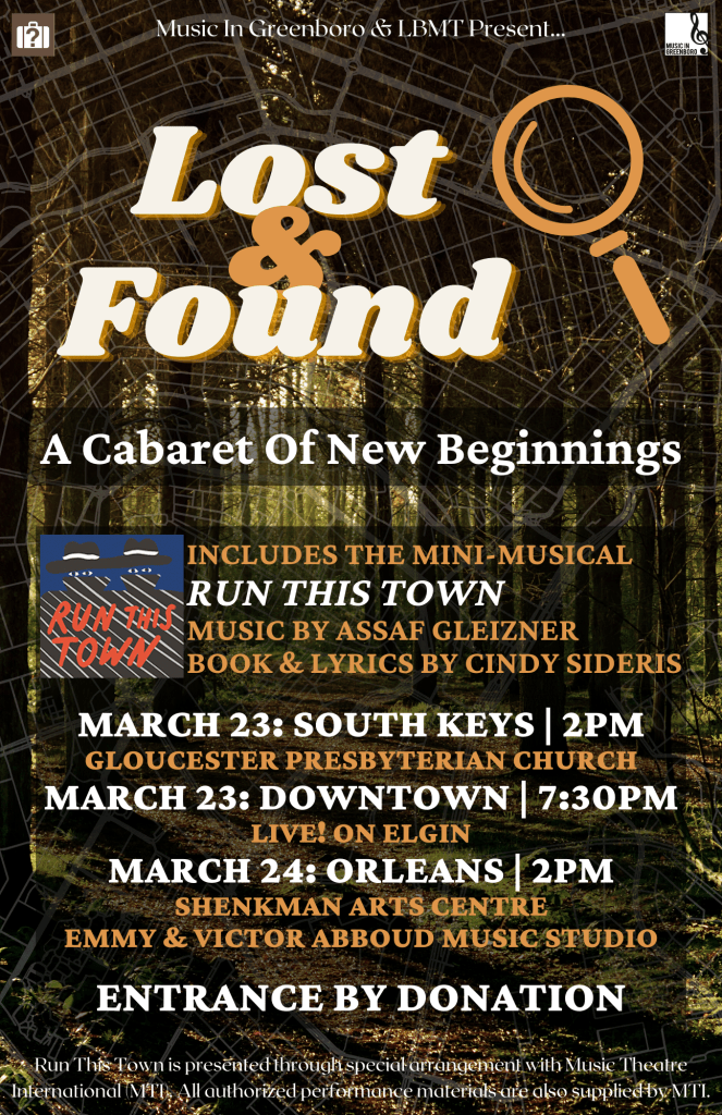 LBMT is thrilled to join forces with Music in Greenboro to present an enchanting music theatre cabaret like no other! This year’s show, Lost and Found, will take you on a mesmerizing journey through the captivating lives of characters who are in search of something or someone, or have experienced the poignant loss of something or someone dear to their hearts. Get ready for an hour filled with heartfelt melodies, powerful emotions, and unforgettable storytelling!