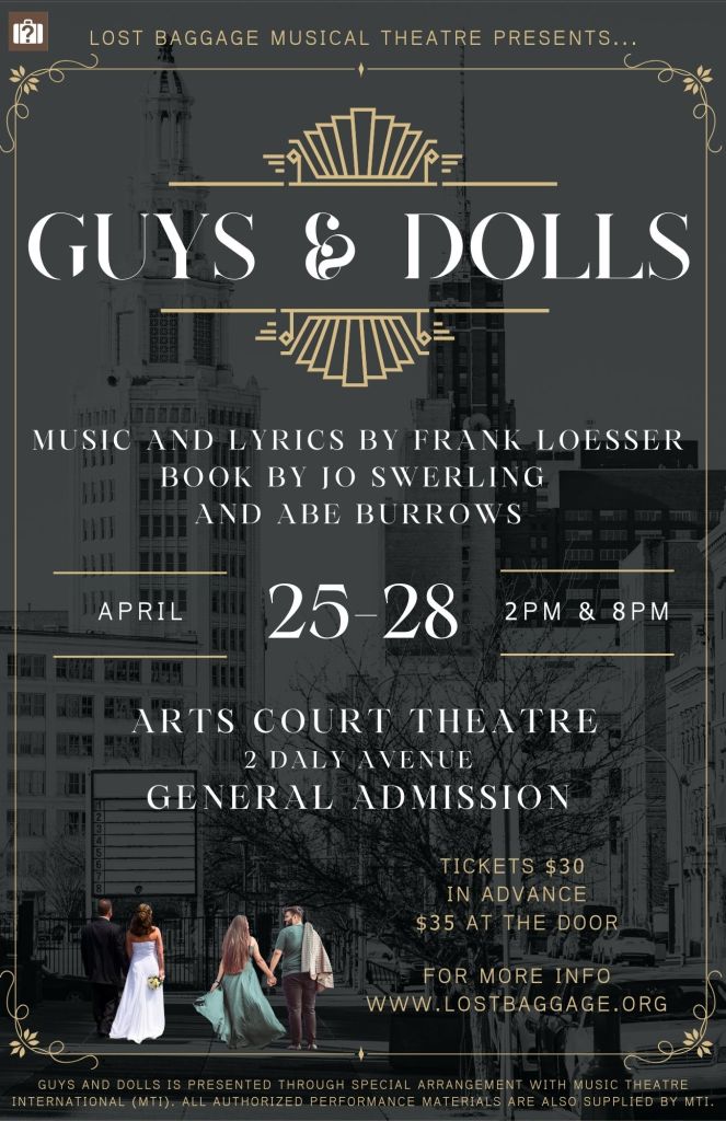 Guys and Dolls is presented through special arrangement with Music Theatre International (MTI). All authorized performance materials are also supplied by MTI.